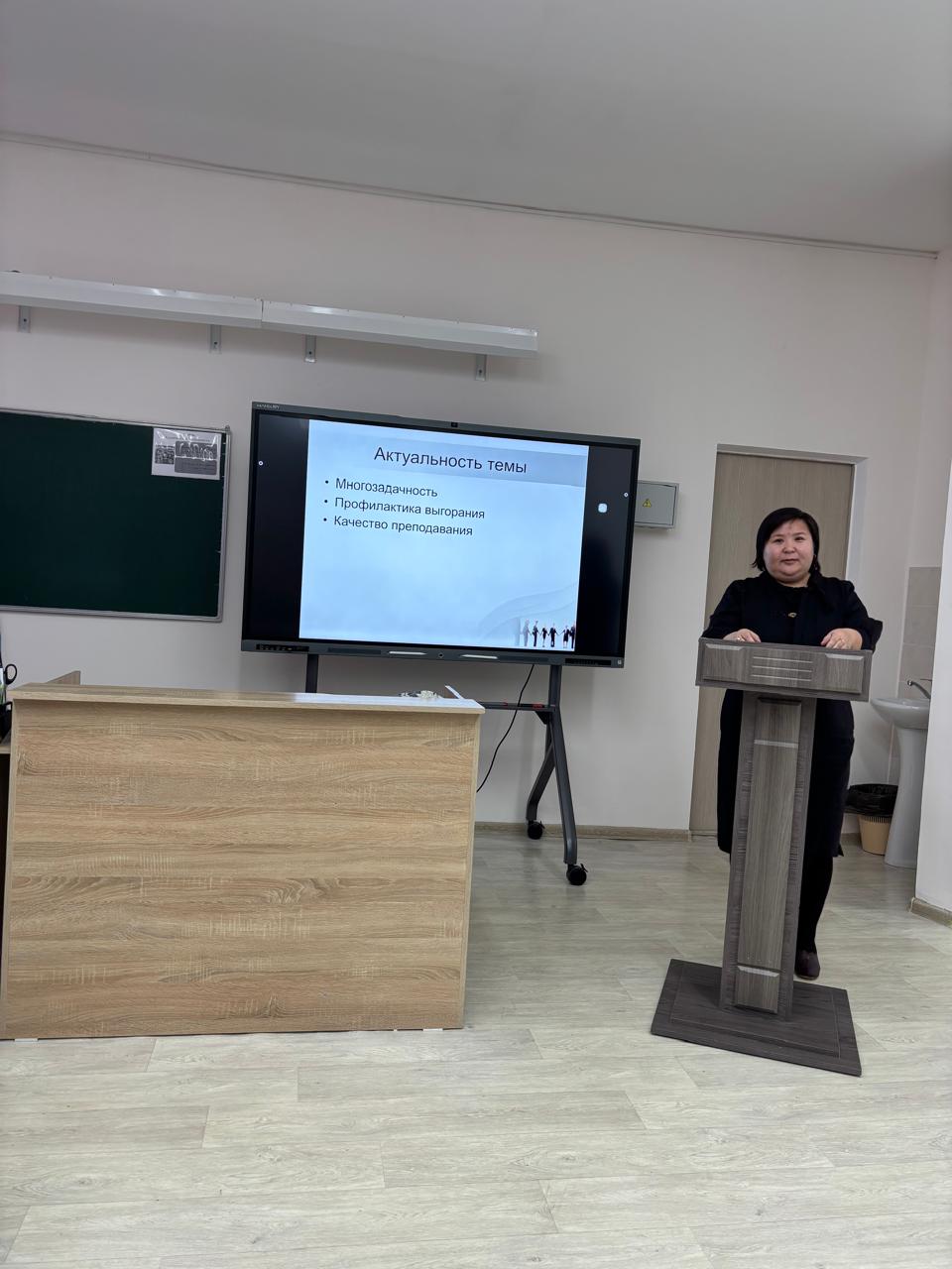 Күзгі демалыста, 2025 жылғы 29 қазанда мектеп әкімшілігінің, мектеп әдістемелік бірлестіктерінің басшыларының және шақырылған мектеп педагогтарының қатысуымен "Кәсіби күйіп қалу : алдын алу және өзін-өзі реттеу"өзекті тақырыбында әдістемелік кеңес өтті. Әдістемелік кеңес дөңгелек үстел түрінде өтті, онда педагогтар, пәндік ӘБ басшылары кәсіби күйіп қалудың алдын алу бойынша өз тәжірибелерімен және өзін-өзі реттеу әдістерімен бөлісті. Әдістемелік кеңестің жұмысы барысында жұмыс барысында туындауы мүмкін педагогикалық жағдайларды және оларды шешу тәсілдерін шешу бойынша кейстер ұсынылды. Әдістемелік кеңестің соңында педагогтардың кәсіби күйіп қалуының алдын алу бойынша ұсыныстар, өзін-өзі реттеу әдістері берілді. Бұл тақырып мұғалімдердің қызығушылығын тудырды.