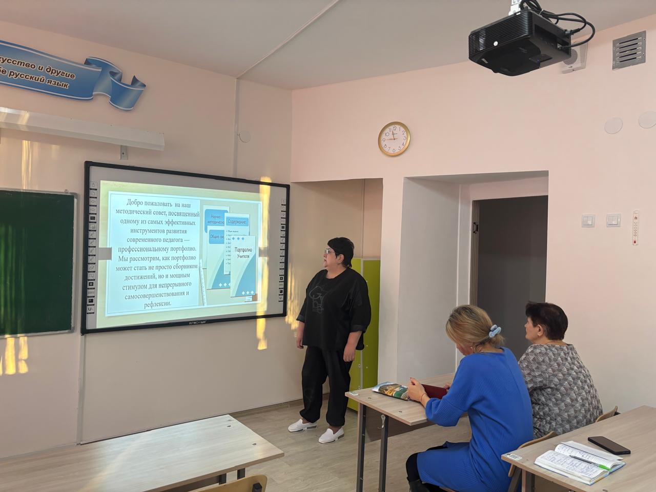 2025 жылғы 31 Қазанда каникул апталығында тәжірибелі ұстаз-шебер Бычкова Нина Маркияновнаның "қолайлы атмосфера құру, оқушыларды тәртіпті сақтау және тарту әдістері" тақырыбы бойынша кәсіби шеберлігін жетілдіру сатысында тұрған жас педагогтар мен педагогтарға сабақ өткізілді. Сабақта мұғалімдер белсенді қатысып, жаңа білім алып, оң тәжірибе алмасты. Директордың орынбасары Светлана Ефимовна Щетинкина "Жас педагогтардың кәсіби қиындықтарын анықтау" сауалнамасын өткізді және мектептің әдістемелік құжаттамасын рәсімдеу ережелері мәселесі бойынша түсіндірді. Жас мұғалімдерге арналған мұндай сабақтар өте қажет, бұл оларға оқушыларды оқытудың ең тиімді әдістерін таңдауға, сабақтарды әр тараптандыруға көмектеседі, бұл өз кезегінде оқушылардың пәндерге деген қызығушылығын арттыруға мүмкіндік береді. Мұғалімдердің өзін-өзі тәрбиелеуі-бұл мұғалімдердің теориялық және практикалық білімдерін кеңейту және тереңдету, заманауи талаптар аясында кәсіби дағдылар мен дағдыларды игеру бойынша мақсатты процесс. Мектеп мұғалімдері мектеп пен қала деңгейінде әдістемелік жұмыстың әртүрлі формалары арқылы өздерінің кәсіби деңгейлерін үнемі арттырып отырады.