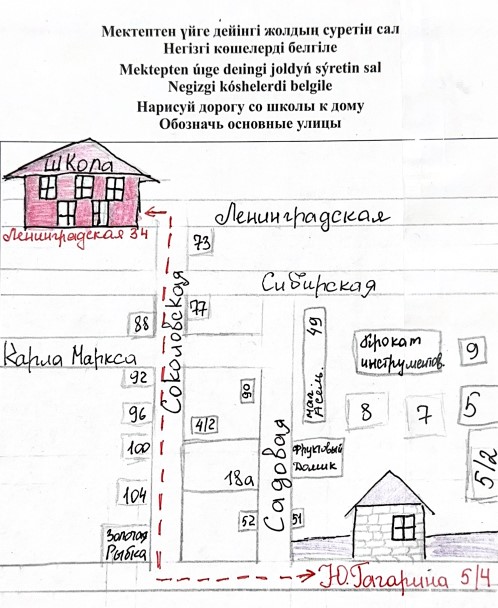 Оқушылардың мектепке қауіпсіз қозғалысын қамтамасыз ету мақсатында әр оқушыға жеке маршруттар әзірленген. Қозғалыс жолдары әр оқушының күнделігінде бар.
