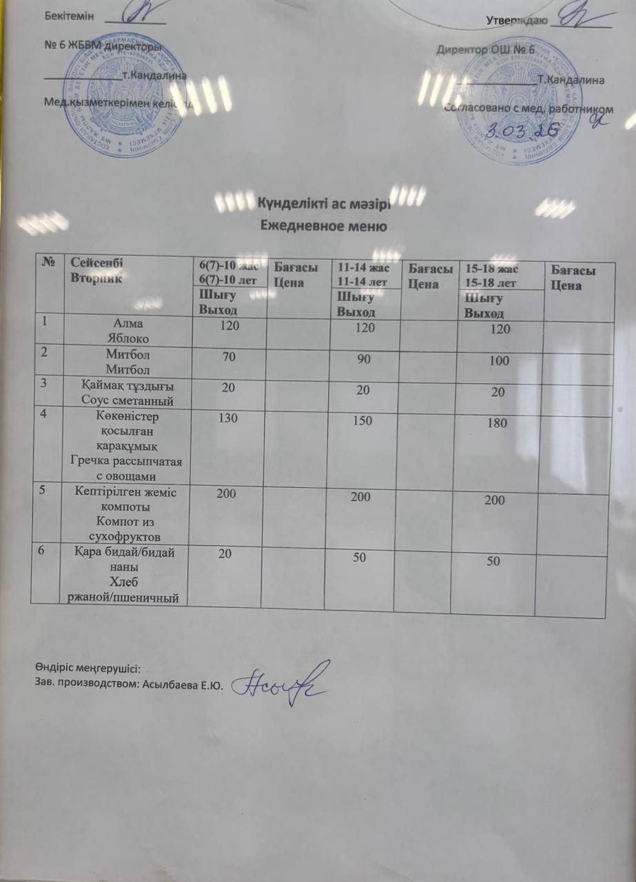 "№6 жалпы білім беретін мектебі" КММ