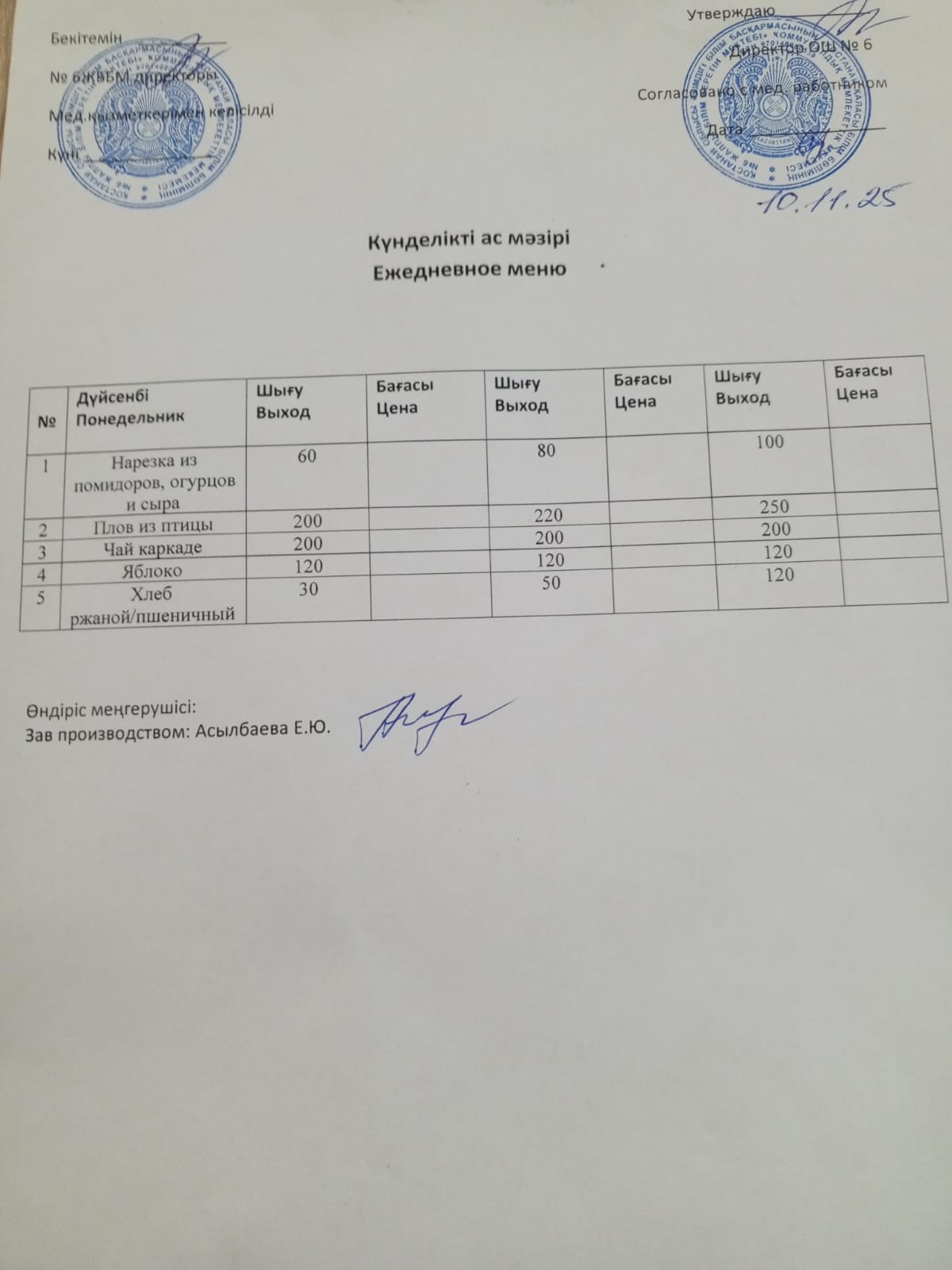 Ас мәзірі 10.11.2025