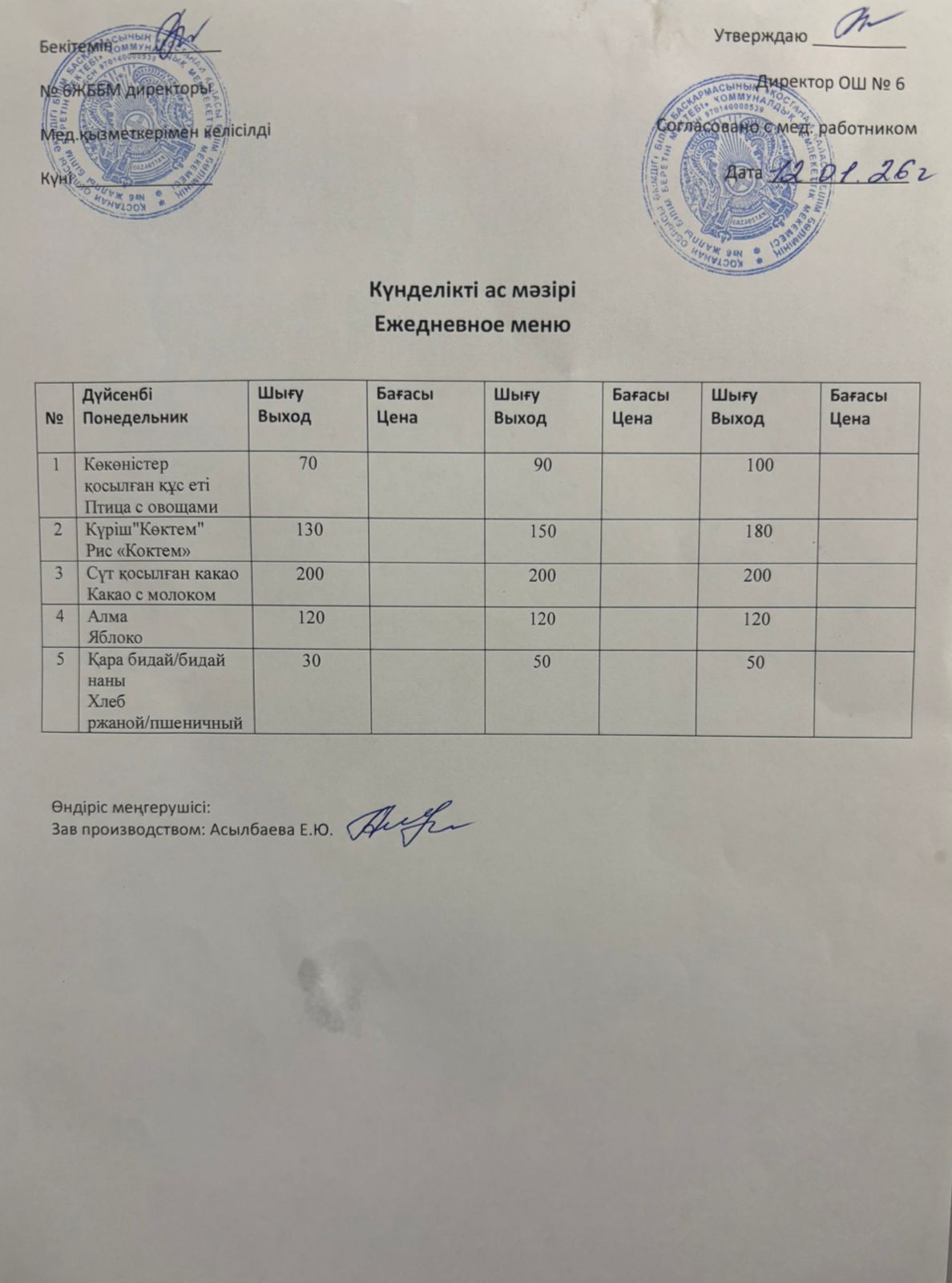 Ас мәзірі 12.01.2026