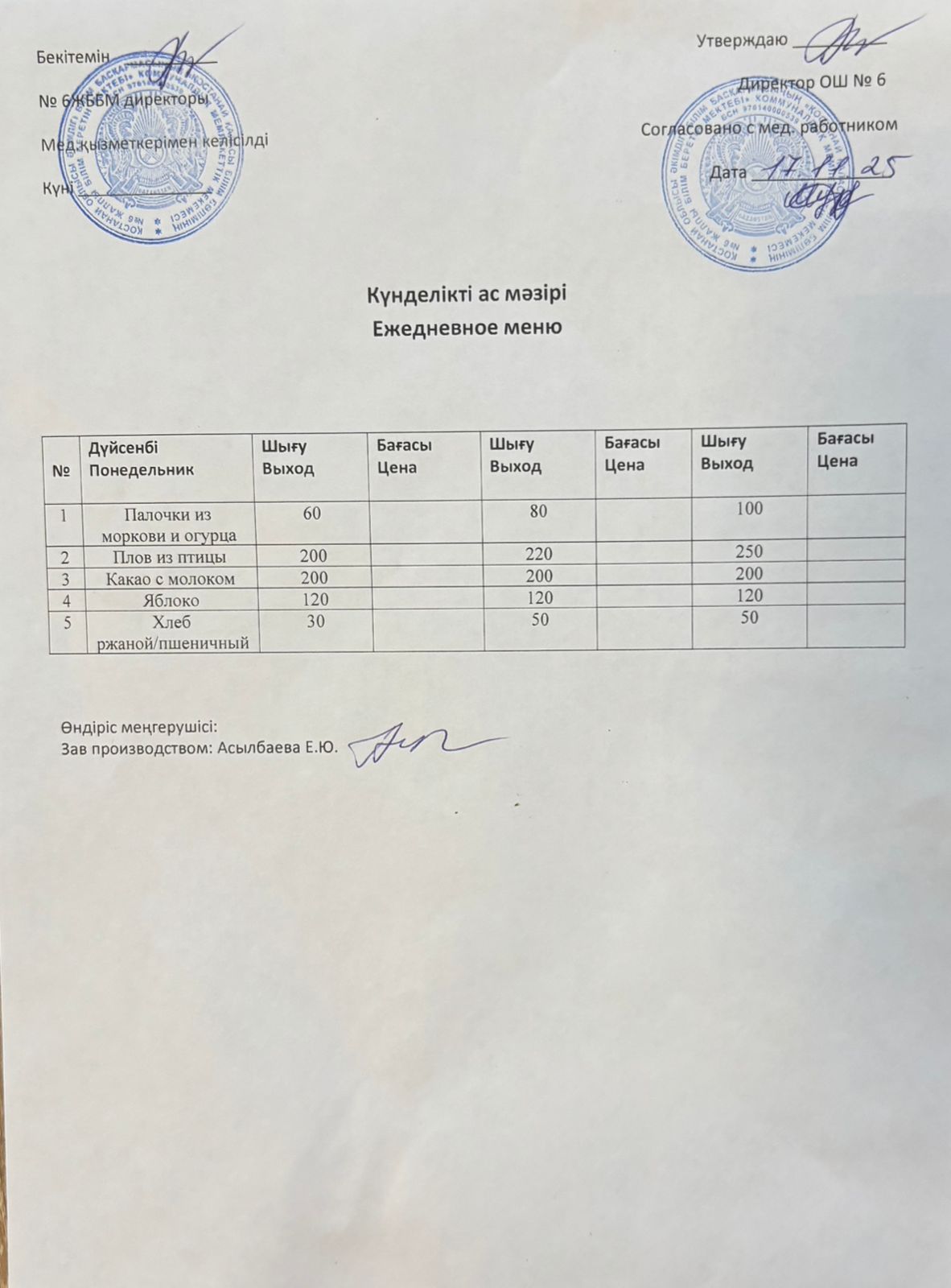 Ас мәзірі 17.11.2025