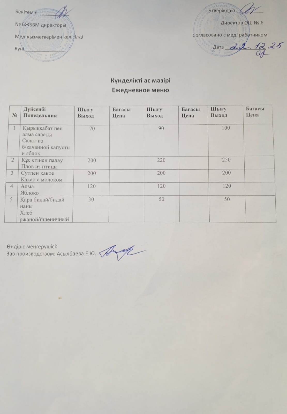 Ас мәзірі 22.12.2025