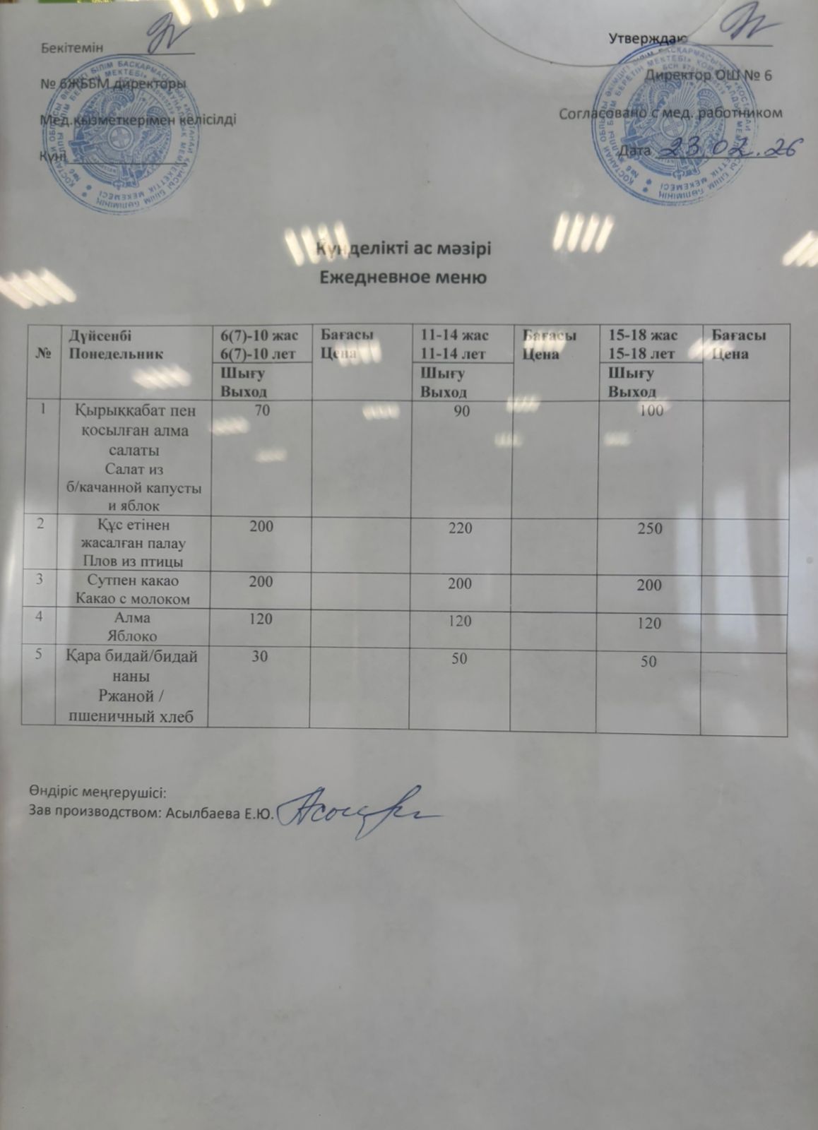"Қостанай қаласы әкімдігінің білім бөлімінің №6 жалпы білім беретін мектебі" КММ