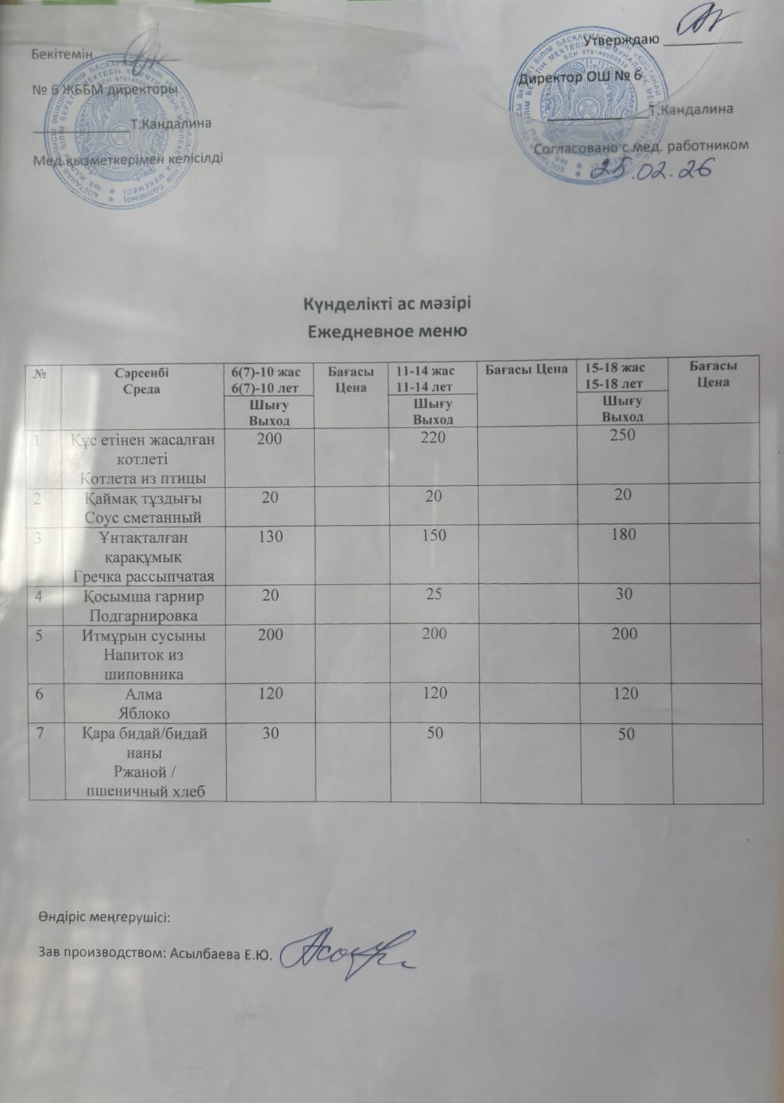 "Қостанай қаласы әкімдігінің білім бөлімінің №6 жалпы білім беретін мектебі" КММ