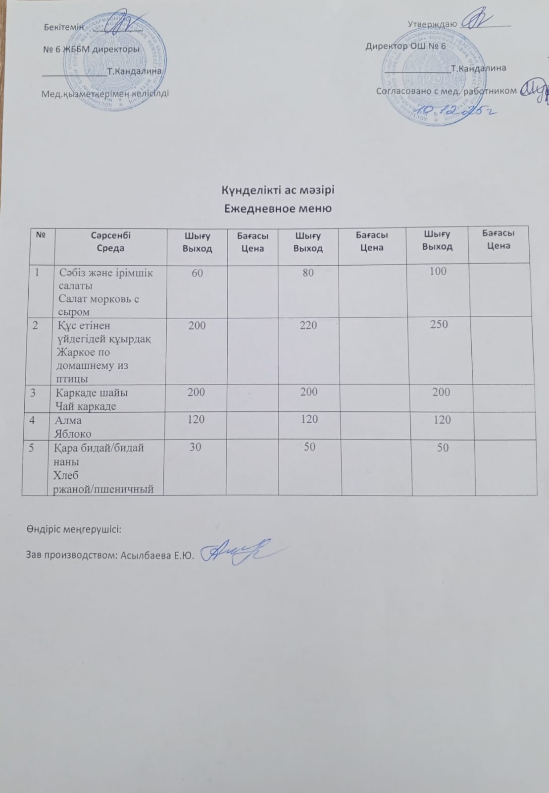 Ас мәзірі 10.12.2025