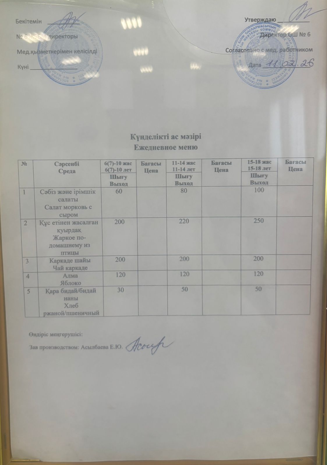 "Қостанай қаласы әкімдігінің білім бөлімінің №6 жалпы білім беретін мектебі" КММ