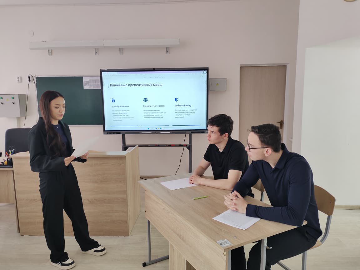 «Заң және тәртіп» айлығы аясында 2026 жылғы 20 қаңтар күні 11-сыныптар арасында «Сыбайлас жемқорлыққа қарсы іс-қимыл» атты брейн-ринг іс-шарасы өткізілді. Іс-шараның мақсаты – білім алушылардың сыбайлас жемқорлыққа қарсы көзқарасын қалыптастыру, құқықтық санасы мен азаматтық жауапкершілігін арттыру, сыбайлас жемқорлықтың себептері мен салдары туралы білім деңгейін көтеру, сондай-ақ қоғамдағы сыбайлас жемқорлық көріністеріне төзбеушілік көзқарас тәрбиелеу.